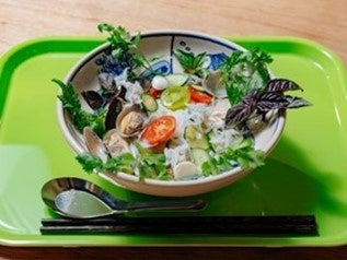 - Phở nghêu lạnh: Nước súp lạnh từ sữa dừa và nghêu, dùng kèm với cá cơm khô và thảo mộc.