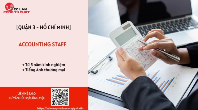 - Bạn có kinh nghiệm dày dặn ở lĩnh vực kế toán, đang đảm nhiệm vị trí kế toán và khả năng tiếng Nhật hoặc tiếng anh tốt, đang tìm kiếm môi trường chuyên nghiệp chuẩn mực để có thể phát huy tối đa năng lực bản thân với mức đãi ngộ cao, ổn định.