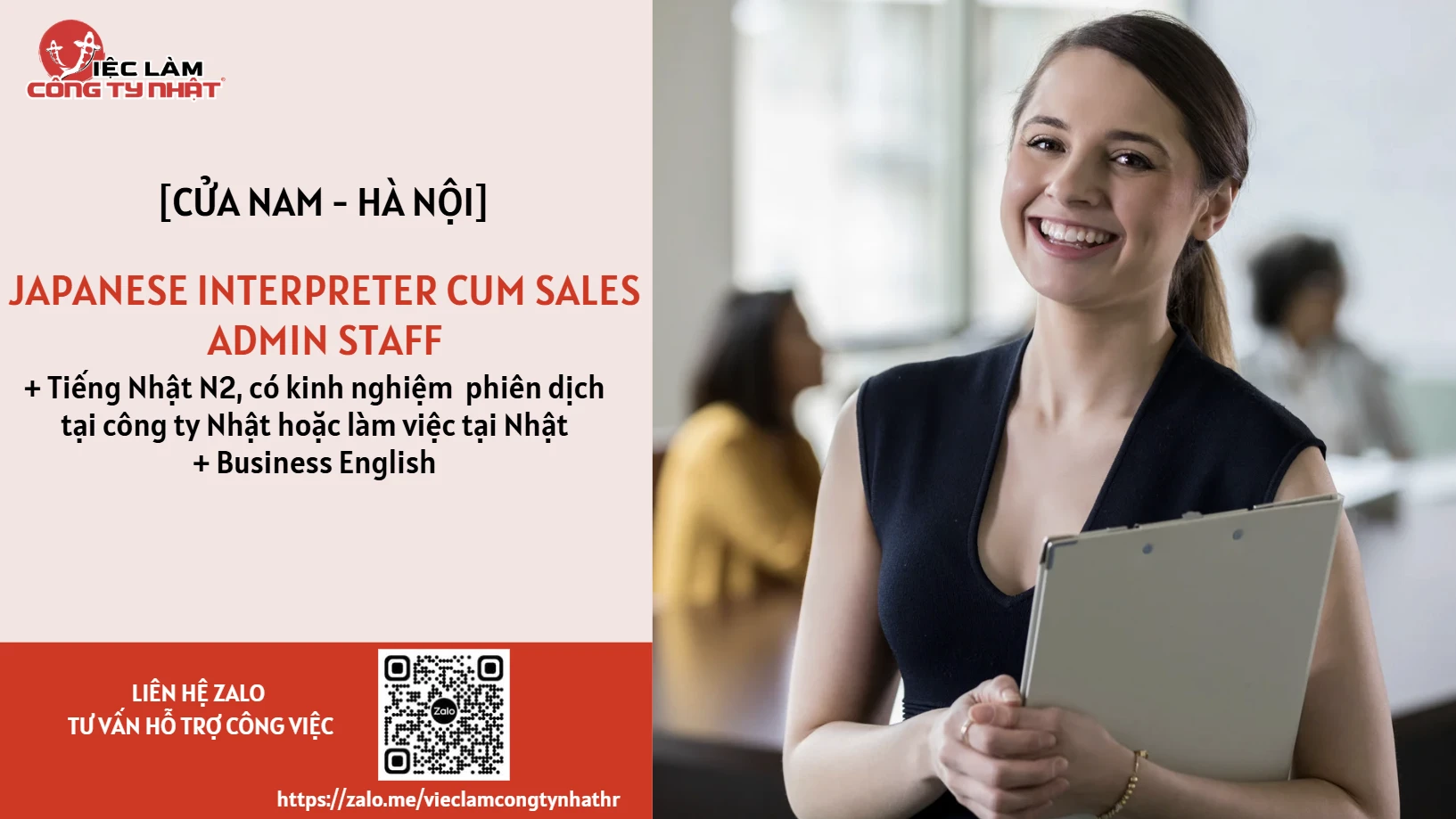 Bạn có chứng chỉ Tiếng Nhật N1 hoặc N2 và đã từng làm việc hoặc phiên dịch trong môi trường Nhật Bản, sẵn sàng đưa ngôn ngữ thành cầu nối cho mọi giao tiếp?